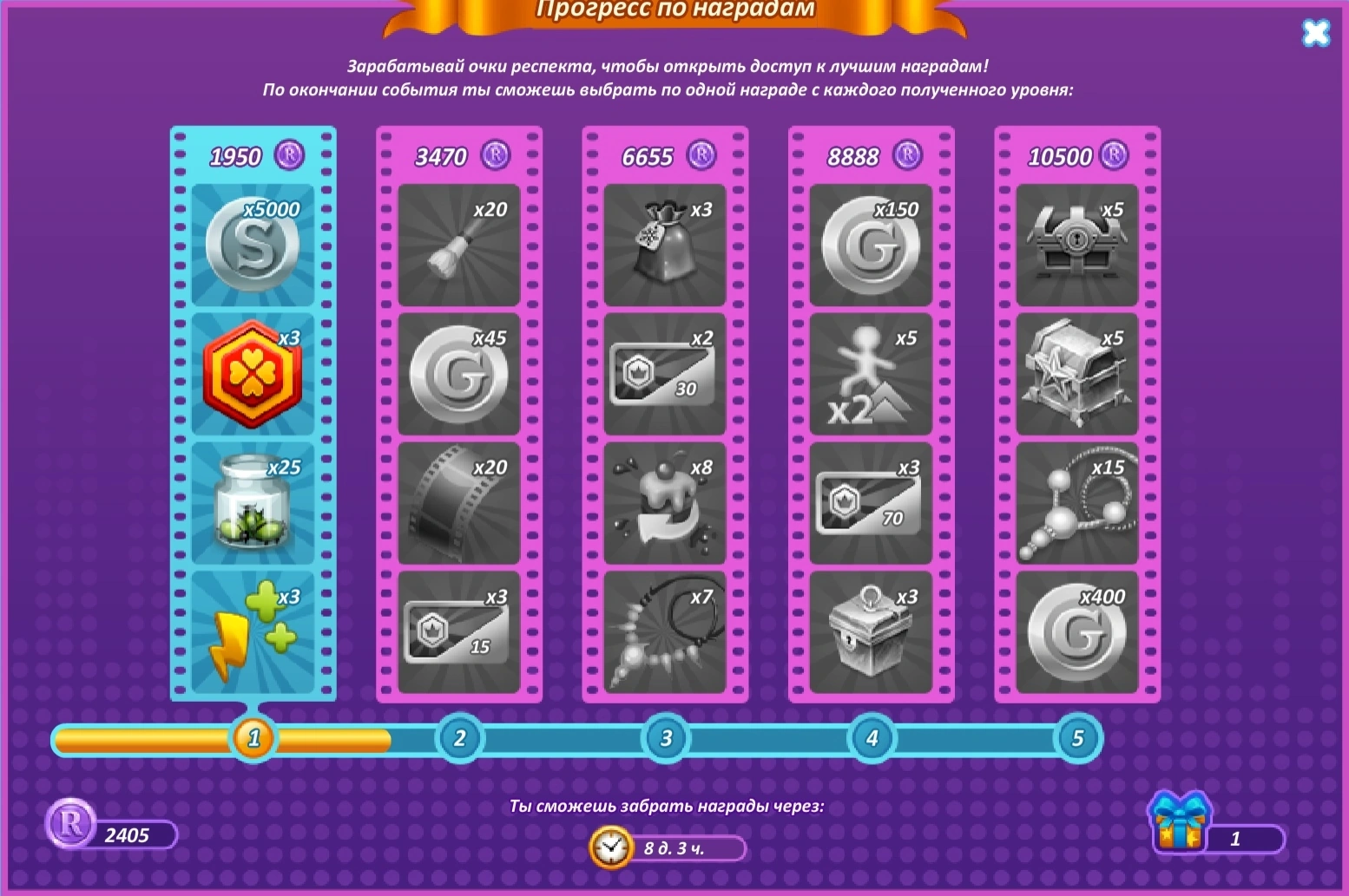 Битва за респект - Акция, в котором игрокам нужно на заданную тематику собрать свой лук, после чего они фотографируются, а другие игроки оценивают образ игрока. Чтобы разблокировать награды игрокам нужно собрать как можно больше лайков.