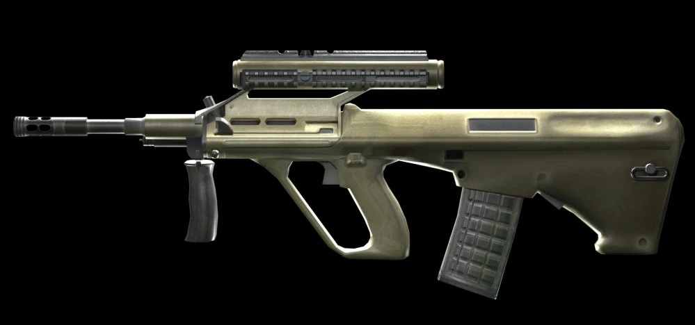 - Despite being classified as a Submachine gun, it is actually an Assault Rifle. Its Submachine gun counterpart would be AUG Para.