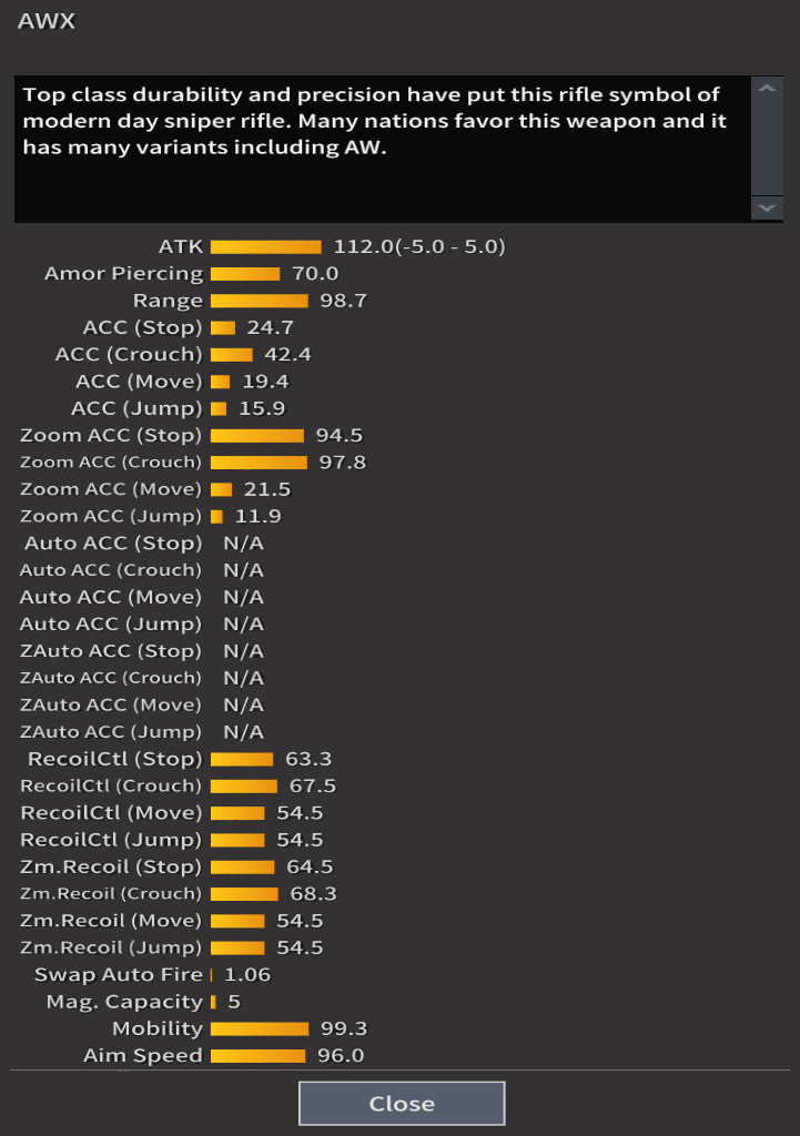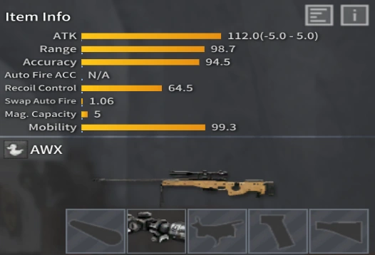 The AWM is an upgraded version of the old, AWM Origin & AWM MK.3. Compared to the original two, it has higher ATK, Range and Swap AutoFire.